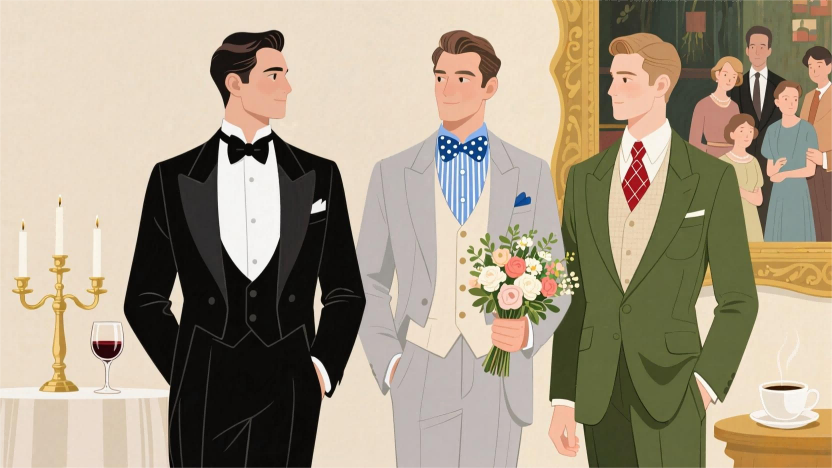 艺术沙龙/音乐会:钻石菱形或宽大领结(蝴蝶结)与花呢、羊毛等复古面料西装适配,呼应艺术氛围的同时,避免过于严肃。