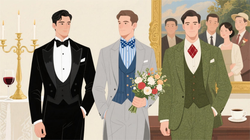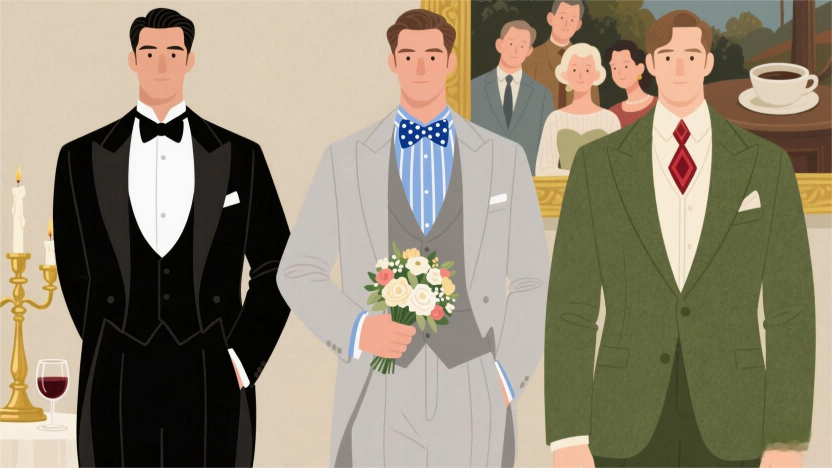 艺术沙龙/音乐会:钻石菱形或宽大领结(蝴蝶结)与花呢、羊毛等复古面料西装适配,呼应艺术氛围的同时,避免过于严肃。